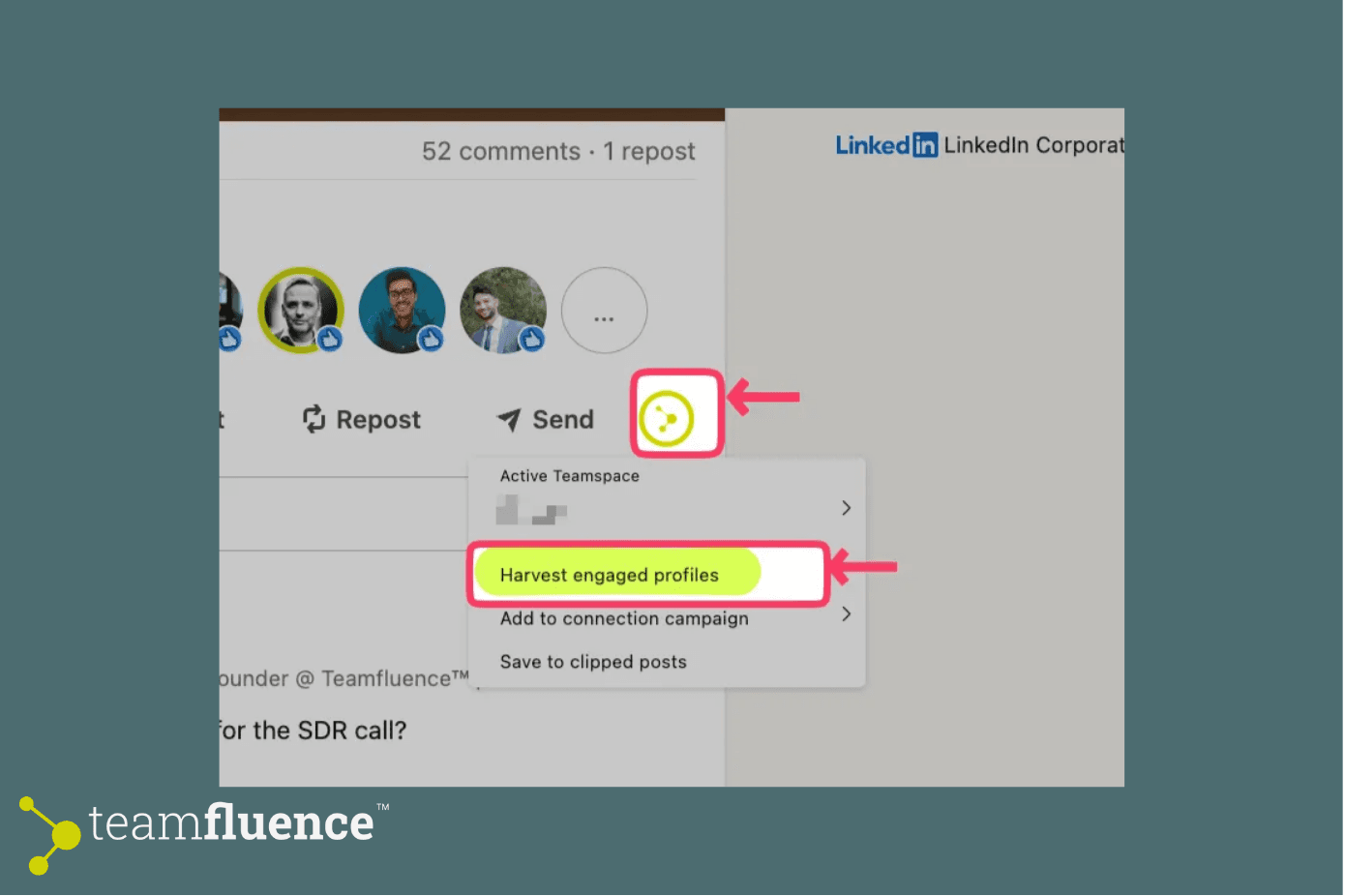 Click the Teamfluence button directly on the LinkedIn post.