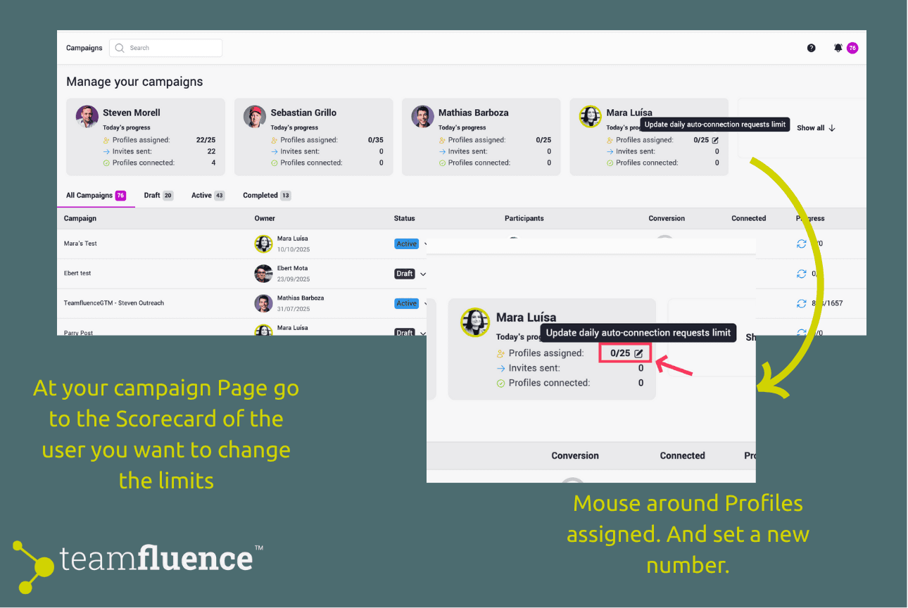 Once a team member joins, new connection invites will be sent daily until the campaign list is completed.